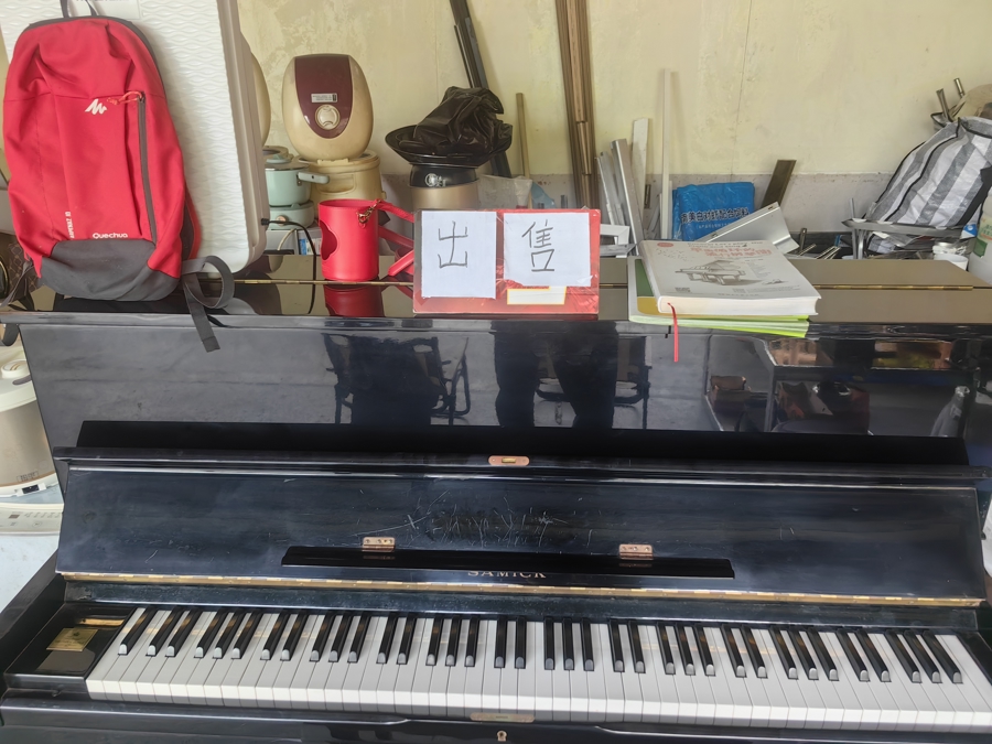 收来的旧钢琴摆在店里,爱好音乐的小言在闲暇时也会弹上来两曲。受访者供图